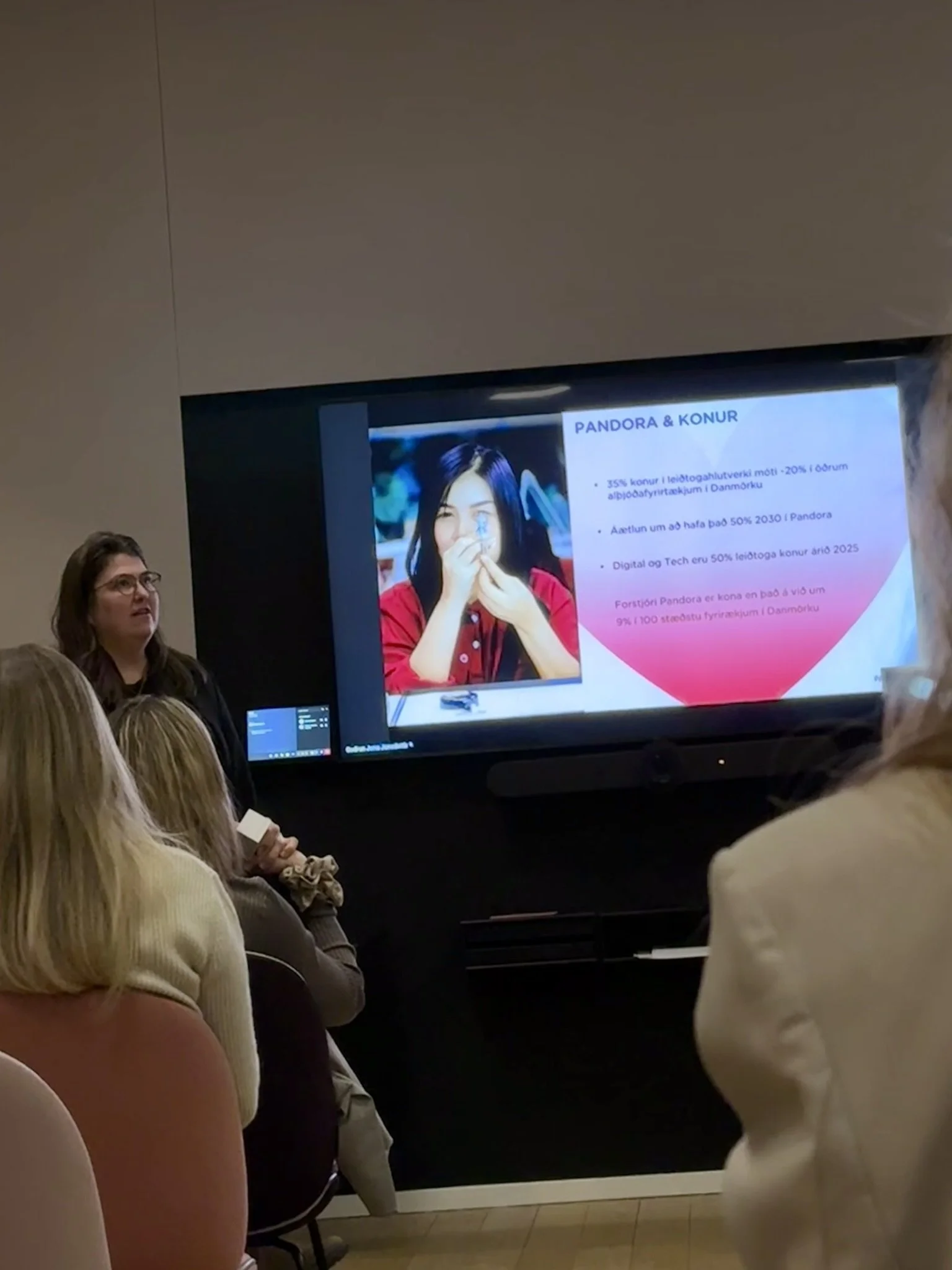 Í heimsókninni var lögð sérstök áhersla á stöðu kvenna innan Pandora. Fyrirtækið vinnur markvisst að auknu jafnvægi í leiðtogastöðum en í dag eru konur í 35% leiðtogahlutverka, samanborið við um 20% að meðaltali í öðrum alþjóðafyrirtækjum í Danmörku. Markmið Pandora er 50/50 hlutfall árið 2030. Forstjóri Pandora er Berta de Pablos-Barbier, sem tók við starfinu í byrjun árs. Vert er að nefna að innan við 10% af forstjórum 100 stærstu fyrirtækja í Danmörku eru konur.